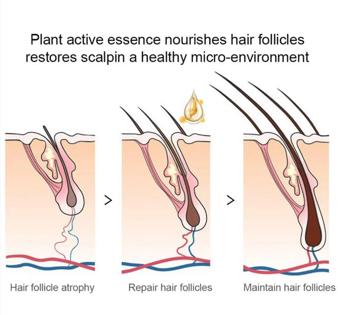 Healthy hair begins at the root, and the secret lies in how well the scalp and follicles are nourished. Our plant-based active essence is designed to restore and protect your scalp’s natural environment, going beyond surface-level treatments that only provide temporary shine. Instead, it penetrates deep into the scalp, targeting weakened or dormant follicles to bring them back to life.